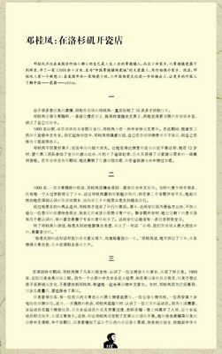 邓桂凤不仅在美国任何场合都宣称自己是土生土长的景德镇人,而且宣传家乡,把景德镇瓷器带到那里,开了一家13000 余平方米、名为“中国景德镇陶瓷城”的大瓷器店,用行动推介家乡。现在,邓桂凤又有一个新想法:在美国开办一家陶瓷学校,把中国陶瓷文化进一步传播出去,让更多的外国人了解中国———瓷器———china。