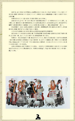 2007 年8 月,台湾《Vogue》(时尚)杂志为创办11 周年推出“世界时尚大师与国民间艺术大师”的大型策划:以天津泥人张、陕西皮影戏、陕西唐三彩、景德镇青花等十大民间工艺,表现国际十大时尚设计师。