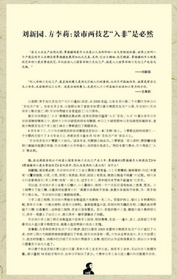 方李莉:仅非物质文化而言,它不只是一些手工技艺,还有一些观念性和行为性的东西。关于景德镇还有没有其他值得申报国家非物质文化遗产项目的问题,据我所知,景德镇还有很多如陶瓷行帮、行规、行会组织、行业崇拜等等,都非常有特色,完全可以申报国家非物质文化遗产项目。