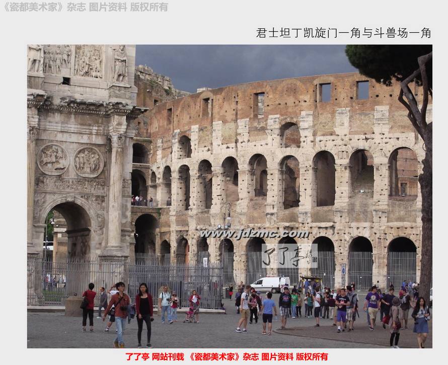 游览这座古城让人深深体会到,古罗马帝国当初是何等的壮丽辉煌。在经历过多少次战火和自然损废的今天,即使它已处于废墟状态,其雄姿仍然不减当年。从气度上讲,它始终保持着古代西方文明中心的尊严。在广场上,那可容纳八万多名观众的大斗兽场和君士坦丁凯旋门,在历时数千年至今仍雄风犹在,气势非凡。漫游在它的周围,脚下的残石碎片犹如我国的秦砖汉瓦,诉说着历史的变迁和那岁月的沧桑。