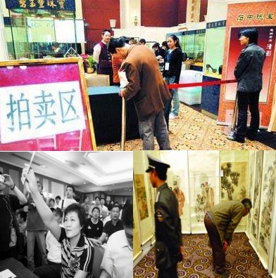自国内第一家拍卖行举槌开拍以来.十余年过去了,这十余年里,是我国艺术市场迅速发展的时段.电是拍卖公司雨后春笋般出现的时段。俗话说,林子大了,什么鸟都有、资本集中博弈的艺术市场也是如此,拍卖公司就是各种各样的鸟。仅在上海一地的拍卖行就超过一百家,除每月的小拍外,在每年春秋两季更是竭尽全力粉墨登场.上演一出出声色俱佳的活剧。 应该说,随着文物法和与拍卖行业相关法规的出台.绝大多数拍卖公司还足基本守法的.基本遵守行规的,基本对买卖双方负责的、但也有一些规模不大.客户信誉还没能建立起来的拍卖公问,为了在夹缝中求生存,分得一杯羹.想方设法在征求拍品方面有所突破,因为对拍卖行来说,征集到货真价高的名家精品,就可能一炮打响.制造轰动效应.等于在市场上做了一回广告;但收藏家不可能将名家的精品交给影响力和号召力都不强的公司,因为这直接关系到拍品的成交价、 为了征集怕品,每个拍卖公司都在削尖脑袋、利用各种渠道寻找.甚至派专人到境外海外征集。皇族及名门之后是他们的目标.高官的家属也是目标,书画家本人当然也是牢牢锁定的目标.不过一定要锁定目前国内一流的书画家.而且价位处于上升期的那些,二三流的书画家,他们的作品能在拍卖会上露面,不管成交与否.都是抬举你了。 小公司征集不到名家拍品怎么办?为了利润.他们就敢铤而走险——接受赝品.或者对赝品采取睁一眼闭一眼的态度,反正艺术市场是凭眼力吃饭的.买对是你的,买错也是你的。我经常在一些小公司的拍卖会顶展上看到非常好笑的一幕,张大千.徐悲鸿、齐白石,舒同、启功和程十发几位的作品连起码的装裱都没有,像尿布一样搭在铅丝上,夹子一夹.几百元一张。但奇怪的是.在拍卖会当天.这些明显的赝品也有人抢购。据圈内人说.这些假画都是当作礼品来送人的,有人托人办事.三五百拿不出于,三五万又设那个能力.就买一张假画应事,看到大名头的书画作品.如果受礼的一方又是外行,就会很高兴地接受。这比收现金安全,也更雅观,这也是如今侦破高官腐败案件时,会从涉案人员家中搜出大量假画的原因了,比如河北第一贪李真家里就有许多这样的假画和假古董。 我曾了解到一家拍卖公司故意拍卖假画的整个过程. 具体过程是这样的:拍卖公司老板与假画的拥有者(或者制假者)事先讲奸斤头,也就是不再按照行规上下家百分之十提取佣金,而是按成交额提取相应的比例。 一般为清末或民国初年某书画名家的几十件作品作一个整体包装.选一个冠冕堂皇的主题,精心印制拍卖图录。 接下来召集一批书画理论家和收藏家开一场某画家艺术风格的研讨会。与会者或许不明就里地来了,但看到的都是图录而非作品本身,所淡的内容无非是这位画家的风格以及对中国书画艺术发展的贡献.纯粹务虚.并不涉及拍品本身,或很少涉及拍品的估价。 研讨会肯定会请记者参加.而一般记者是看不懂作品真伪的,拿了红包后就会当作重要新闻来报道.有必要的话,这些假画还会借正规的美术馆办一个为期三天的展览会。如此做新闻就更有看头了,对外行的欺骗性更大。前不久就有人在珠海美术馆办了一个关山月.黎雄才作品展,结果开幕当天就有两位画家的家属冲进展厅质疑策展人提供的一百余件展品几乎都是伪作。后来策展人拿了几件作品送到北京请专家鉴定.专家说是真迹无误。但家属又质疑:拿去作鉴定的那几件并不是展出的那几件。现在此案还没有下文.但也可见这种“项庄舞剑,意在沛公”的展览并非孤例。 精心造势后,拍卖会当天一般都能形成火爆场面.假画最终成功拍出。 现在,随着人们警惕性的提高,假画的出笼更具前瞻性了。比如在假画出笼前两年,先向出版社买一个书号,出版一本某名家的书画精品图册.在市场露面,造成这批赝品已被”国家”认可的假象.等两年后拍卖公司出版拍品图录时就会注明“在某出版社出版的某图册中有记载”,这样的信息也颇具迷惑力。 还有一种情况,是通过某些渠道让假画参加正规的画展。比如某名家诞辰一百周年书画展,或海派书画家群展等.拍卖公司拍卖这批假画前印制的图录也会特别注明这件拍品参加过某次画展,如此做法也能迷惑买家。 一位老师傅对我说,不能相信图册,不能相信展览会,也不能相信专家,只能相信自己的眼睛。越是吹倡神乎其神的东西,越是要保持高度警惕。这位老师傅在每次拍卖会前都要赶到预展现场.亲眼看过拍品。看到不确定的东西,他也不吭声,只有看到真迹才会发表意见。 我问他为什么不当场指认赝品。他告诉找一件事,7年前他受一收藏家委托赴北京.在一个拍卖预展上为一件任伯年的花鸟作鉴定,仔细看后他当场认定是赝品。但回到上海后就接到恐吓电活:若是再乱说的话.要戳瞎他的眼睛。 我有一朋友老徐,正宗老实人.工资奖金加积蓄都扔在收藏上面.自己穿得像叫花子。眼看到大家部买了房.房价又天天涨,老婆跟他急了,天天吵。老徐被逼得走投无路.找了几件东西包了包送到上海某拍卖行.准知他们看也不多看就一口咬定是假货。老徐火了:“我在淘旧货的时候.你们这斑‘小赤佬,还在穿开裆裤呢。”但是这班“小赤佬”就是不买他的账.其实是想把价格压下来.为他们的牟利腾出空间。老徐再送到别的拍卖行.他们也不收,理由也是看不准。老徐急了,说我