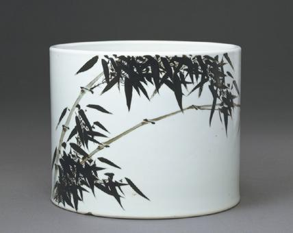 不过,笔筒归根到底还是一个筒形,所以它的造型无论如何改变,始终是大同小异。但是它在材质方面却有千种万种,竹、木、象牙、瓷、铜、玉、水晶、料(玻璃)、紫砂、漆等。而从装饰方法上来看,就有刻、镂、雕、绘等,以瓷笔筒为例,就分青花、五彩、粉彩、三彩、颜色釉等。时至今日,笔筒也是文房用具中器型变化最小、装饰方法最为丰富的品种之一。