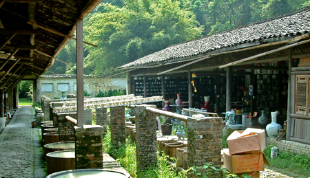 获悉今年瓷博会期间,古窑又将推出全新节目迎接着国内外八方宾客,笔者饶有兴趣地再次来到西市区枫树山蟠龙冈的古窑参观。这里是景德镇陶瓷历史博览区的重要部分,是一个集生产经营、文化旅游、文物保护为一体的文博单位。自1980年开始筹建,经过28年的建设和发展,已具有一定规模,自1984年正式对外开放以来,已接待中外宾客员120余万人『次』,1995年和2001年,被授予“景德镇市爱国主义教育基地”、“江西省爱国 主义教育基地”;2005年被国家旅游局批准为“国家4A级旅游景区”。古窑四周群山环抱,树木葱茏,占地面积源园公顷,建筑面积44187平方米,由古作坊、镇窑、博雅园、风火仙师祠堂、陶人画坊、历代陶瓷精品展示馆组成。生产作坊以仿古四合封闭式建筑为主体,错落有致地分散于厂区内, 作坊为瓷坯成型生产场所,采用传统手工轳辘车拉坯成型,自然干燥,其整个工艺过程与明代宋应星所著《天工开物》所记相同。其结构与制坯工艺水乳交融,是至今仍在使用的罕见的手工业建筑遗存和传统的生产工艺。镇窑,又名柴窑,因其形似半个鸭蛋复于地面,故称蛋形窑,为景德镇独创。镇窑在元代已初具雏形,明、清时期,浮梁魏氏世传结窑技艺。由于镇窑以松柴为燃料,窑炉容量大、温度高,适应烧制各种传统瓷器,当今世界仅此一座,因其具有珍贵的历史价值。2007年7月,被省人民政府批准为“省级文物保护单位。”被列为省保单位后停烧,仅作为遗迹供游客游览参观。为弥补这一缺憾,在“镇窑”对面建成一座按其尺寸规格缩小的“小柴窑”,并于2003年10月投入生产使用。2007年,在镇窑内利用“客房”建成“窑中。茶舍”。客房是窑厂管事先生的歇息场所,并兼做会客、洽谈之处。窑中。茶舍吸引了不同层次的游客前来观赏、品茶。其中最具耀眼的便是地下展示的百余块宋元时期青白釉和卵白釉瓷片,它均为镇窑周边出土的遗存。千年碎残缺的瓷片,令多少后人心存遗憾。而这清晰的刻花和剔花纹饰,既全面反映了官窑瓷器生产的历史文化信息,又折射出官窑器物的绚丽光芒。如今这些瓷片已成人们研究官窑瓷器的器型、装饰,揭开官窑工艺奥秘和探索中国陶瓷史、宫廷生活史、中外文化交流史的宝贵实物资料。博雅园主体建筑为“致美轩”,二层仿古楼台建筑,上下两厅经销景德镇名瓷曰“风火仙师祠堂”为宗庙式建筑,供奉童宾神像,两旁分别为金、木、水、土、雷、电诸神,1988年被列为“市级文物保护单位”曰“陶人画坊”为纪念清代督陶官唐英所设,画坊以回廊、画室环绕,内有唐英陈列室,陈列唐英生平及后人的研究成果、唐英产品照片及生产工具复制件。今日古窑,以其特有的传统制瓷工艺、古典民俗建筑、清恬雅致环境和接待服务文明的融合,构成了一幅反映明、清时期景德镇瓷业的风情画,深受广大宾客的赞誉,被称之为“活的历史博物馆”。
