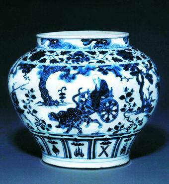 2005年7月12日,英国伦敦佳士得艺术品拍卖会在紧张的空气中进行。当拍卖师将手中槌子狠力敲下后,美国古董商以1568.8万英镑(约2.45亿元人民币)捧走了一件元青花“鬼谷下山”大罐。