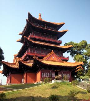 龙珠阁 峰峦独耸的珠山,自古就是景德镇的象征。唐代以来,这里亭阁继立,唐代称聚珠亭,宋代称中立亭,明代称朝天阁、环翠亭,清代改称文昌阁。20世纪初又重建亭台而称龙珠阁。今天新建的龙珠阁仍位于珠山旧址之上,显得更加气势恢弘,巍峨壮观。明清之际,这里是御窑厂后山的山顶,站在这里可以俯瞰御窑厂的全貌,此阁就是御窑厂的代表性建筑,并演化成景德镇标志性建筑,现在为景德镇官窑博物馆所在地,里面陈列着自明代以来御窑厂产品的修复件。