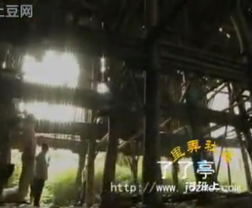 同期声:沟沿上这一条,听说全部都是老坯房的雏形,除了前面有一家是坯房老板的房子,其他都是坯房,我们现在一起找一间来看一下,我脚下站的这个位置,是人民瓷厂原来老柴窑的坯房,身后这个叫廒间,这一边是正间,摄像机呆的包括我这个位置是晒架塘,专门用来晒坯的。