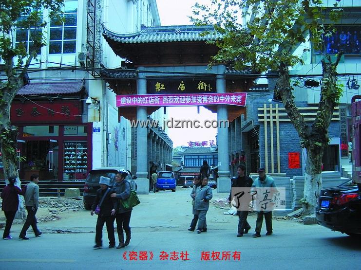 如果你走到景德商厦的西北面,就能看到一大片区域在改建和装修。临近莲社路的路口竖立起一座石碑坊,上写着“红店街”三个字,这是市委、市政府根据有关部门的计划、专业学者的建议和市民们的强烈要求,新开发的一个集艺术品交流和历史遗迹的利用及人文发掘和旅游资源整合,着重向民众和游客展示古代景德镇瓷上彩绘的工艺和人文历史,是对古窑、御窑、民窑的有效补充。