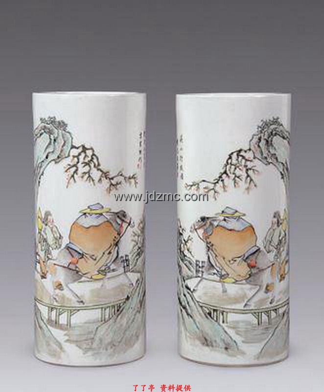 (注:他的浅绛山水画法直接取法元人及清初四王,在瓷板上大胆地运用“偏锋连勾带皴”法,借助文人画的意境表达写意效果,为釉上彩绘瓷画开写意先河)。程门尤其喜爱“万绿丛中一点红”的意境。程门还兼擅釉上人物、花鸟彩绘,并有青花作品存世。。了了亭 景德镇陶瓷艺术馆 资讯