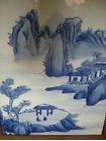 ② 分水:也称“混水”,青花绘制工艺之一。在勾好的轮廓线内,用含水量不同的青料填色称之为分水。分时笔吸满料水,依照轮廓线进行填色,色分深浅,料水亦有浓淡,可分为头浓、正浓、影淡等五至九种不同色阶,亦称“料分五彩”。