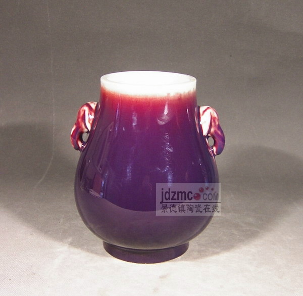 器形:玫瑰紫器形源于故宫藏鹿头尊,改成象耳。