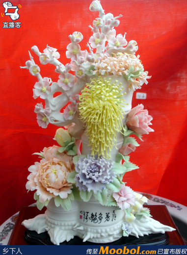 下面是2008-01-09苏州东园广场举办的景德镇精品瓷器展销会 “群芳争艳”的彩色捏雕,售价高达8万元。李申盛/文