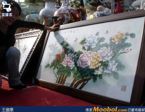 2007-03-30 苏州桂花公园广场 景德镇精品瓷器展销会,一幅长2米、宽1米的釉上彩花开富贵瓷板画瓷板画标价28万元。而这样的作品,属于匠画作品,批量产出,在实际市场价格是极其低廉的。展销会这样操作,只会臭掉行业的名声。李申盛/文