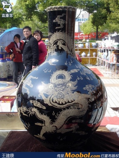 2007年4月4日, 苏州桂花公园广场 景德镇精品瓷器展销会,一个标称用本金 (24k黄金)制作的黑地天球龙纹花瓶,标价38万元。且我不说这个是不是本金的绘画,也不说这类同样也属于大量制作的东西,38万元这样价格随口都能标的出来,是苏州人好欺负吗?李申盛/文