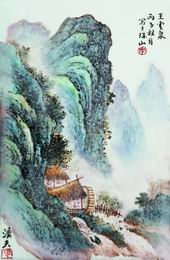 | 备 注: | 年代:1996年(丙子) 作品赏析 此件作品为青绿山水,画面层次有度,远景山影虚纡飘渺,云烟升腾,近景山势险峻雄伟,蔚为壮观,点染皴擦老道超凡,饶有韵致。整件作品清雅隽秀,恬淡宁静,具有静水流深的艺术效果。寥寥数笔,神完气足,形已具焉。 作者简介 王云泉(1916-1998),江西乐平人。1961年曾获景德镇“陶瓷美术家”称号,以山水画享誉瓷坛。 | ||