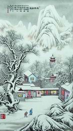 | 备 注: | 年代:1999年(己卯) 作品赏析 凌宗正1999年秋创作的粉彩“抱琴访友图”瓷板,以传统山水笔法来表现积雪寒山、楼台亭阁,以丹翠画栋雕梁,於冷色调的雪景图中点出暖意,起到了醒目提神的作用。山石阴面浓墨皴染,石顶峰峦留白以表现积雪。墨彩皴染处复加白色点笔,以强调漫天飞雪的情景。左上题杜甫诗:“十里黄云白日曛,北风吹雁雪纷纷。莫愁前路无知己,天下谁人不识君”。 作者简介 凌宗正(B.1929),江西新建人。师从祖父凌美树(清末民初景德镇著名的粉彩画家),为工艺美术师、中国工艺美术学会会员。擅长粉彩雪景山水。 | ||