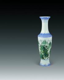 | 备 注: | 年代:1990年(庚午) 作品赏析 此件粉彩薄胎山水瓶器形修长,清丽脱俗,意境雅致。敞口、细颈、溜肩、撇足。口沿、肩部、足部分饰如意纹、缨络纹、蕉叶纹等几何纹饰,色泽淡雅。器身上绘青绿山水通景,山雾缭绕、烟雨氤氲,千峰叠翠,荡气回肠。落款为行书“黄山烟云。庚午年冬月,天成画於景德镇。”作者运用山水画中的晕染和皴法把山峦层叠的远近关系处理得十分到位。对山岩肌理的质感的描绘合乎法度,是一件值得收藏的雅器。 作者简介 邹天成(B.1938),号楚天,又号干越老人,曾师从陶瓷山水画名家张志汤,擅长山水瓷画,画法细腻,笔力雄劲。 | ||