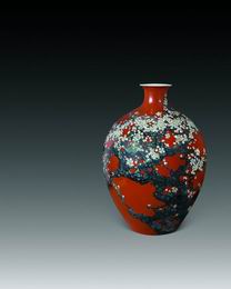 | 范敏祺 高温红釉“梅开五福图”瓶 | |||