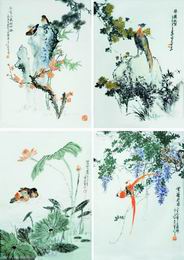 | 傅尧笙 粉彩花鸟瓷板一套(四件) | |||