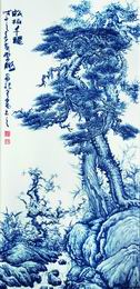 黄云鹏 青花“松柏千秋图”瓷板 22万成交
