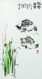 此件作品诙谐幽默,天真可爱,迥异於作者素来的创作风格。作品落款为“神仙富贵。甲申年於景德镇陶瓷研究所,翼报画并记。”在涂翼报的作品中,水仙永远都是瓷画的绝对主体,没有多余的点缀和衬托。数株水仙凌波玉立,素雅高洁,冰肌玉骨,清新脱俗。然而在此件作品中,作者巧妙地加入了鱼的造型,令水仙在其稚拙的对比下更显高格与典雅。