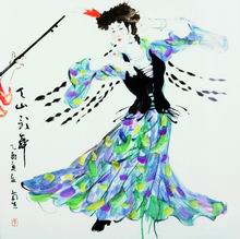 此件作品为瓷艺大师李菊生之作。落款为行书“天山舞者。乙酉年画,菊生。”並有一方其常用的印款“李”。作品撷取了岭南画派的表现元素,融合中西方艺术特点,突出色彩的明暗对比和光感变化,以欢快淋漓的笔触塑造出了生动的天山舞者形象。人物体态丰腴,身姿婀娜,舞裙飘逸,神采飞扬,极富艺术张力。冬不拉的琴杆和演奏者的左臂更是给观者留下了无限的遐想空间。