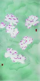 此件作品体现出了古厚、简明的气息,用色清新古雅,艳而不俗。布局上采用了满视野的构图方法,营造出了“接天莲叶无穷碧,映日荷花别样红”的诗歌意境。青青罗盖,奕奕摇曳,粉妆淡抹,凌波玉立。作者在一些部分运用了类似半刀泥的手法,在釉质的包裹下,更显画面特殊的质地效果。具有现代陶瓷的韵味和强烈的艺术感染力。作品落款为“吉祥”及“曾瑾”朱文方章。