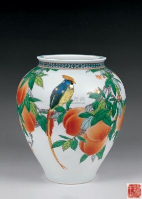 | 戴玉梅制 作者简历 1963年生,江西波阳人。高级工艺美术师、江西省工艺美术大师。早年随父亲戴荣华学艺,现在轻工业陶瓷研究所从事陶瓷美术创作,擅长古彩、粉彩工笔花鸟兼色釉装饰。 | |