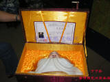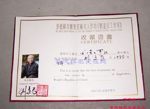 刘远长的哈哈罗汉购买常识: 2、 刘远长的证书,无论塑料封皮、还是内面纸页,都印有“刘远长工作室”字样。没有用过单页的塑封证书和其它证书。 3、 哈哈罗汉下面签字都是刘远长亲自所写,是烧上去的,洗不掉的。假的多用油笔临时写上的,洗的下来。 4、 刘远长哈哈罗汉包装盒很讲究外观质量,决不会用一般的包装盒。 5、 泥印一般有:“刘远长”、“刘远长工作室”、“景德镇景”、“德镇雕塑瓷厂”等字样。但不一定每次相同或全用。 6、 哈哈罗汉,包括“千喜龙”,都没有设编号或限号,如有如“8”之类字样,那只是工序记号,而没有特殊意义。 7、 刘远长所做哈哈罗汉只有一种白纹片色的。且不涂墨纹。任何其它颜色的都不是他的。 |