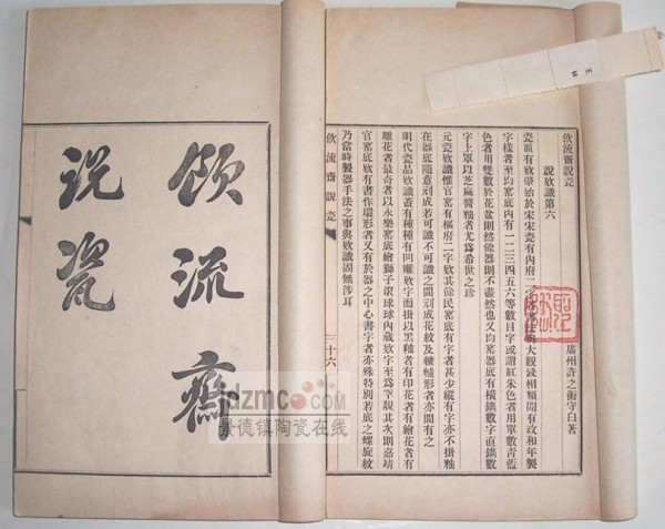 《饮流斋说瓷》由广东广州人许之衡(字守白)撰写。生年不详,卒于1925年。早年毕业于日本明治大学,归国后任北京大学国文系教授及研究所国学门导师等职,对中国古代词、曲研究颇有成就并有专著多部。 《饮流斋说瓷》是他在吸取前人成果基础上撰就的,并且将问题分成十类加以详细说明,颇具条理。尽管研究陶瓷不是许氏的所长,但此书对古瓷的研究、鉴赏仍具有较大的权威影响和必读价值。