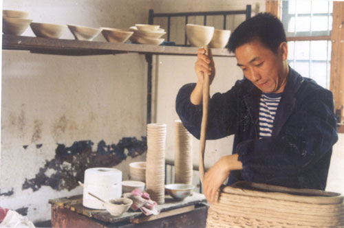 一种原始的陶器成型方法。先将泥搓拉成长圆条,按器型大小把泥条逐圈盘筑成器型,然后用拍子拍平,再用手蘸水里外抹平,使之成器。用这种方法制成的器物,内部往往有泥条盘筑的痕迹。现代陶艺采用此法者较多,很有远古气息。 |