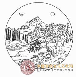 天保, 《诗·小雅》篇名,为臣下及后辈人颂祷之辞。九如是:如山、如阜、如岗、如川之方至,如月之恒,如日之升,如松柏之茂,如南山之寿。因每句有如字,故称九如。此为贺寿的祝颂语。画幅以山水为饰,题诗有: “华封三祝岁岁有,天保九如秩秋春”。 |
