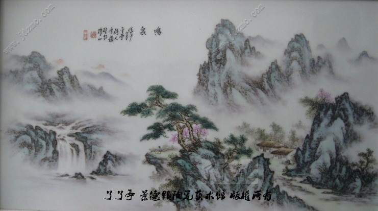 汪雪媛 粉彩青绿山水瓷板《鸣泉》