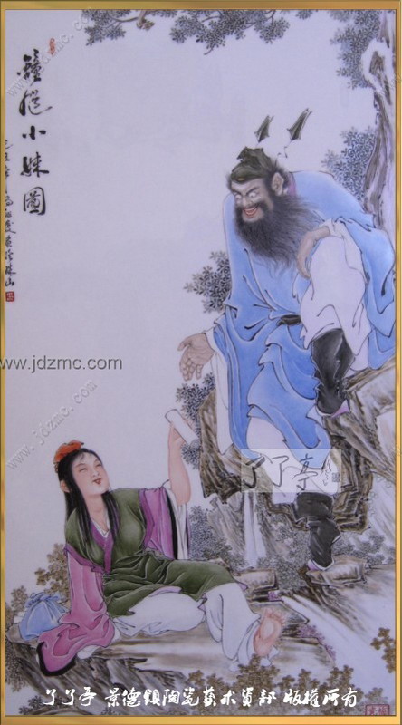 冯祖发釉上彩“钟馗小妹图”二尺六瓷板