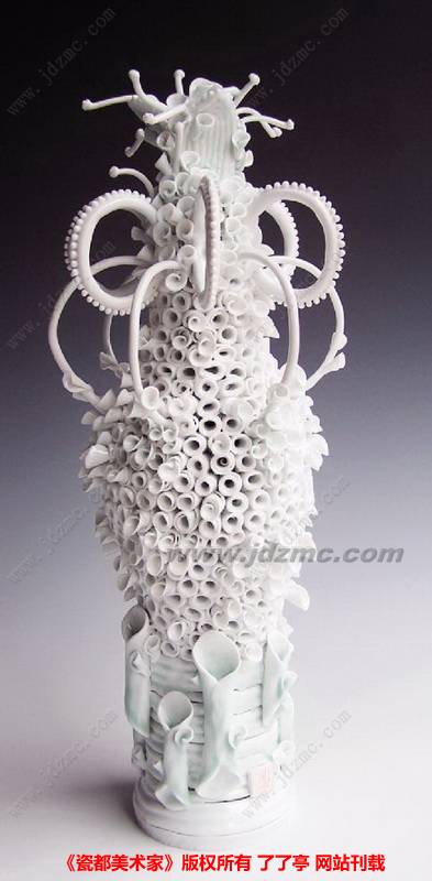 作者饱含"千年飞梦,今朝终成真"的激情,为创作这件瓷艺作品,恰到好处地应用泥卷、泥条,以意象表现意境,作品动与静相结合,借喻花卉、齿轮等表现欣欣向荣,含蓄隽美,特色鲜明。寓意一代代中国航天人凭着不断努力和勇敢气魄,一次次把国家的崭新高度标记在太空的豪迈精神。