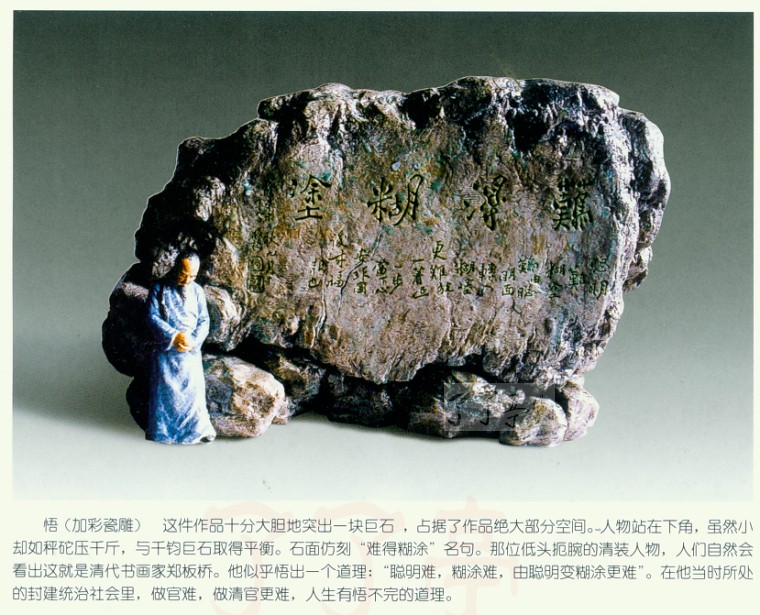 | 陶瓷艺术欣赏 《悟》加彩瓷雕 作者:张育贤 | |||||