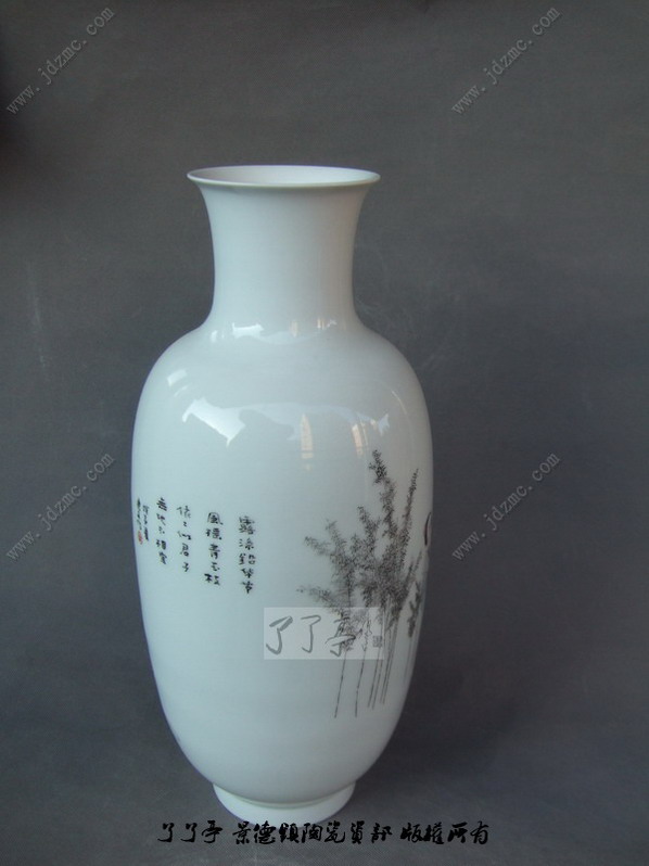 “露涤铅粉节,风摇青玉枝。依依似君子,无地不相宜。”刘禹锡的《庭竹》呈现出了“竹”修长的身姿,安详的气韵,象征着清高,清雅,宁折不弯,不与世俗同污,具有坚贞的个性。正如人的个性一样,清高自许,不与世沉浮,秉赋了与生俱来的超脱。自古文人墨客大多喜借此抒发感情,以竹来托物言志。新作“竹韵图"也正是借用陶瓷艺术的语言来呈现出作者对竹的喜爱并加以深入宣扬自身所追求的君子之德.而这也丰富了我们的心灵,使我们的传统美学充满了天地人的交感共,令人心生敬意.人平生心里有竹多好,若是,养眼,养心,养廉也。我想若如此,不是一种很好的韵致吗?。 |