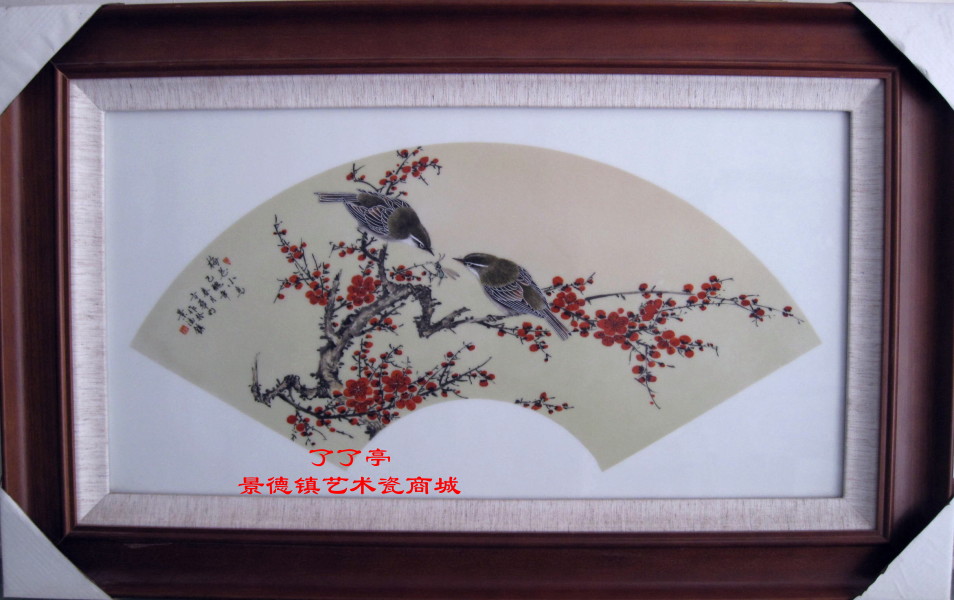 方华明的山水画很漂亮.我先后给朋友们推荐过不少方华明的山水风景画,由于他画风的精细与色彩的和谐,很受朋友们的欢迎.今天去方老师家,看到一幅花鸟作品,眼前一亮.好漂亮,这不,这会儿拿出来给大家欣赏. 方华明幼时就喜爱艺术,八十年代开始师从程元漳学习陶瓷彩绘,师承了程元漳优美精细的画风.这幅山水作品,画作清新雅致,有浪漫磅礴之气。颇耐近看远赏,观之如入仙境超然脱俗,山里人家,群山峻林,无论巨细.均表演得淋漓尽致.它宛若是女士手中的女红,纤针细线,微孔密眼, 我见方华明作画.是深有触动的.今年夏秋,景德镇很是炎热.方老师那儿没装空调,身旁一把电扇.常是赤膊上阵.一手拿着放大镜,一手拿一支细笔,画瓷扳上小人儿,聚精会神,我为之感动。有诗曰"谁知盘中餐,粒粒皆辛苦"其实,谁又知每一幅值得称道的艺术品,包含着多少付出,多少积累,多少成败,多少心血。 这几年来方华明的作品年年有进步.这是我的朋友们公认的,他们关注着这有强烈的传统元素的重工工笔作品,很多后出道的艺术家追求写意,追求快速,追求谁也说不清的陶艺去了。有多少人愿意苦苦地留守这块繁重的艺术领地呢,方华明执着地守望着,辛勤地耕耘着。天道酬勤.方华明很放松,从容相对,自有他自已的乐和趣。了了亭.陈也君/ |