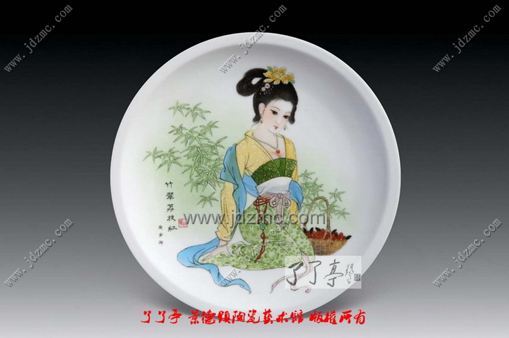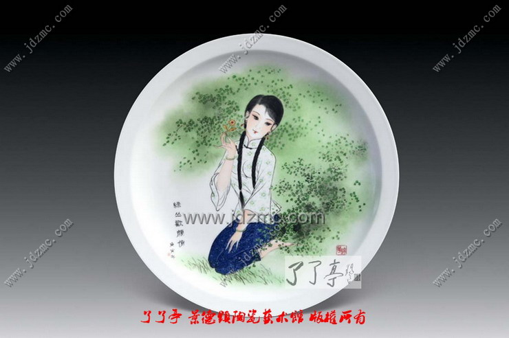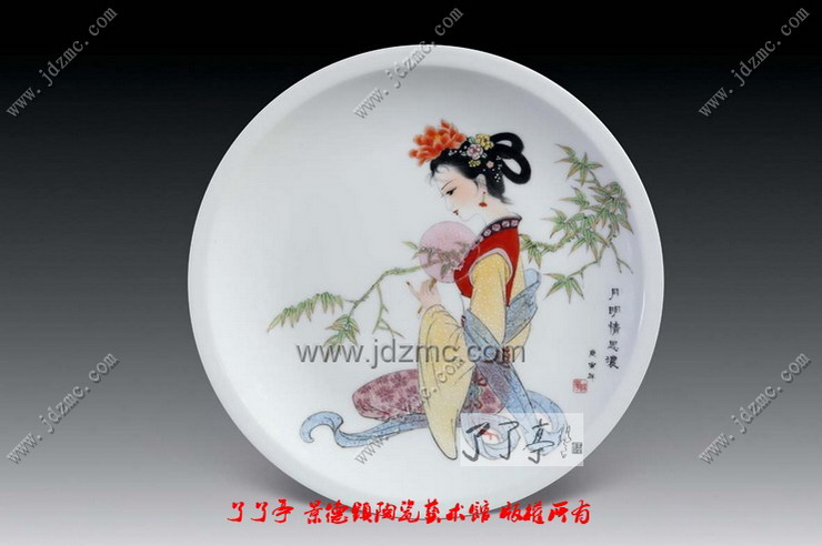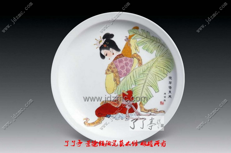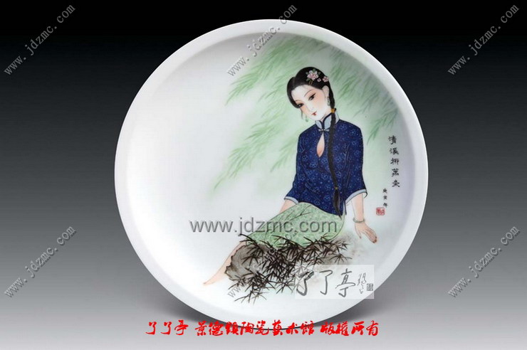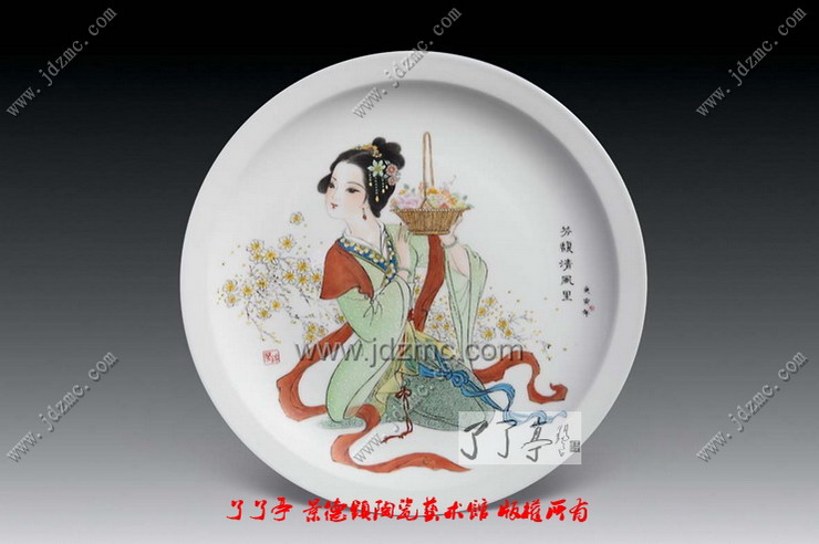 古朴典雅的意蕴是艺术家品昧的象征,理想的仕女更像是一件温雅不俗的文房清供,与琴棋书画相伴,点缀着历代文人墨客的悠闲生活。为什么在景德镇艺术陶瓷中有些艺术家笔下的仕女画之所以如此迷人,是因为观者可以通过欣赏来摆脱现实中的约束,能体味出文化中最纯粹的东西。千年的中国艺术文化中,没有女性即没有世界,没有仕女,艺术就不完整,因为,绘画中没有女性,就会苍白,女性题材进入绘画,绘画才能够充满活力地发展了千年。