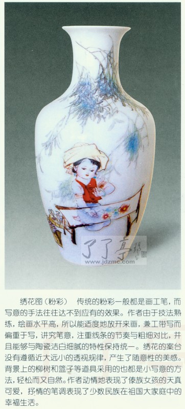 陶瓷艺术欣赏 《绣花图》粉彩 作者:钟莲生