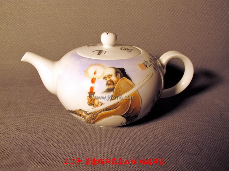 八百多年后,我拿起这件醉酒挑灯看剑的茶壶,泡上一沫清茶,横坐在店里的藤椅上,映入着画面上辛弃疾杀敌报国、恢复祖国山河、建立功名的壮怀,品味着徐徐清香的好茶,我透过淡淡的的茶香,看到了这一历史的画卷,倾刻间,金戈铁马,气吞万里如虎,辛弃疾率领的50壮土那疾马奔驰的蹄声渐渐盖过了往事千年的沙场,在我的耳鼓上敲响了历史的回音。