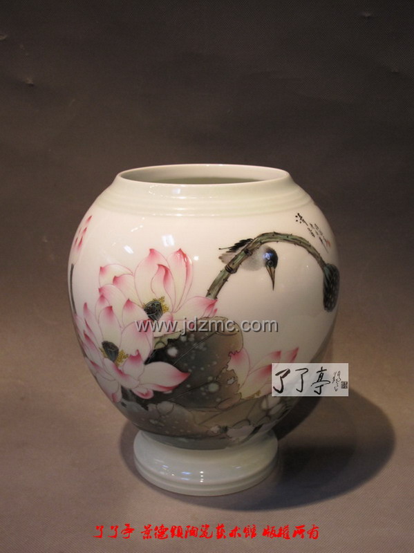 扫街,就是找些好作品,徐斌的作品我尤喜前面一件,器型是陶瓷的空间语境,他决定了于画面空间的构成形式,而且能为画面形式传递出一种境界,一种感觉,一种气象。好似第一件工笔花卉,辅以优雅的器型,加深了画境深幽、高雅、清淡。画面之中,用笔细腻认真,一笔一笔不肯含糊,画面的另外一面留出疏朗宽阔的空白,似乎在有意无意间给观画者留出了宽广心理空间及情感空间。了了亭·李申盛/文