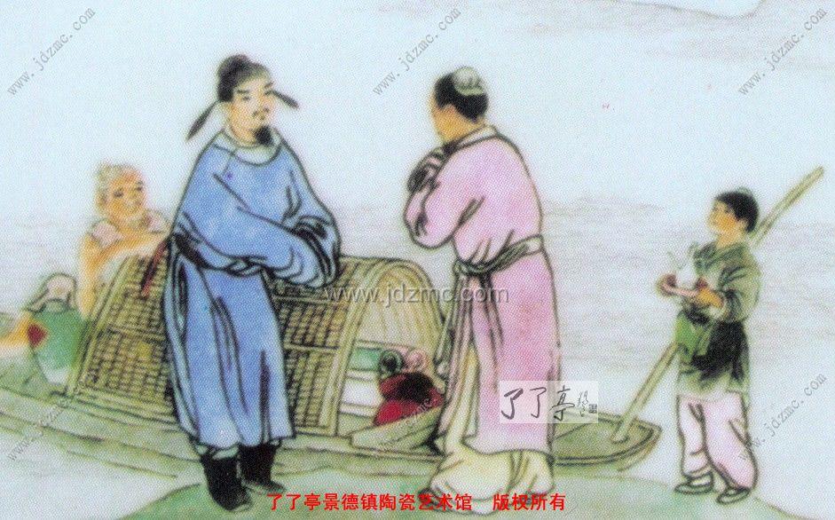 王锡良 粉彩《桃花潭》瓷板画 欣赏