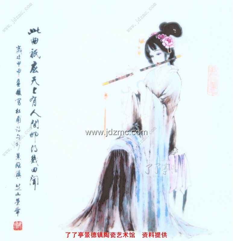戴荣华 粉彩《此曲只应天上有》瓷板画