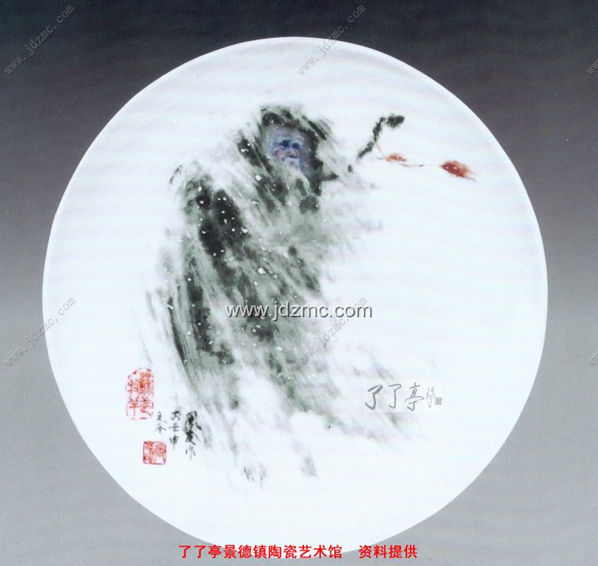 粉彩《包拯投砚》瓷板画 徐庆庚