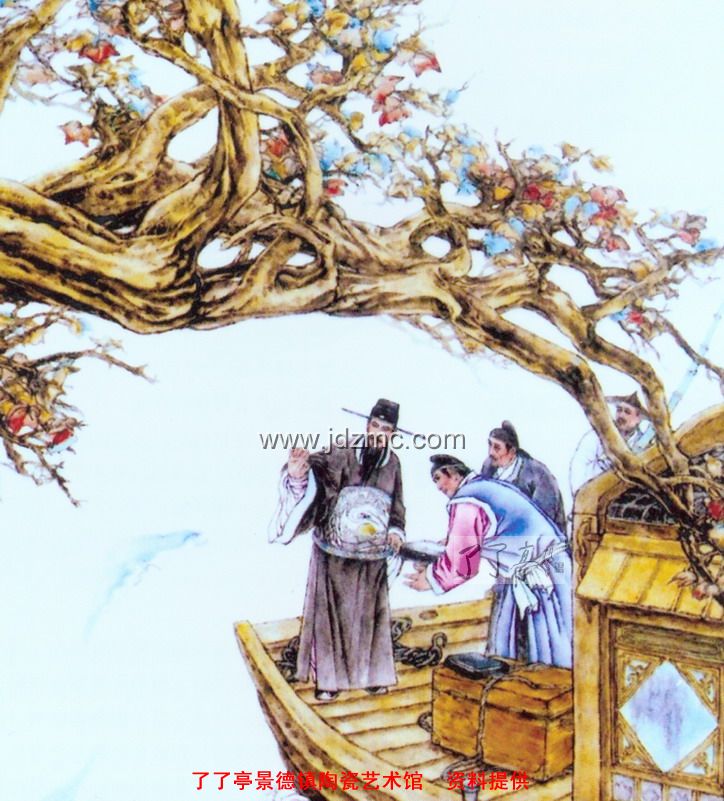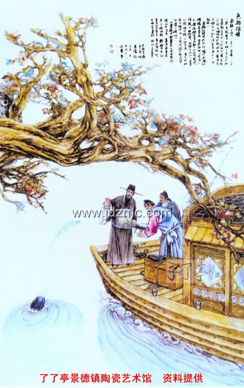 粉彩《包拯投砚》瓷板画 徐庆庚