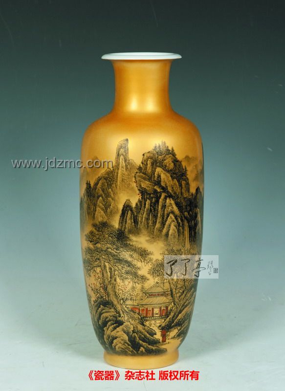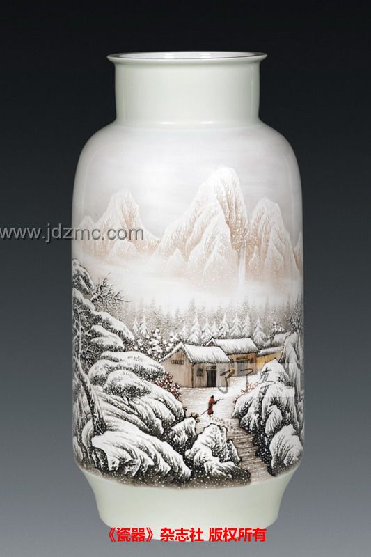 釉上彩瓷瓶《瑞雪迎春》 作者:陈其云 高:44cm口径:17cm 釉上彩瓷瓶《寒林晓露》 作者:陈其云 高:43cm口径:13.5cm 《瑞雪迎春》《寒林晓露》作者:陈其云 陈其云,中国职业技能陶瓷手工彩绘高级技师(国家一级),景德镇市高级陶瓷美术师。其作品造型精美,工艺运用自如,颇具功力。