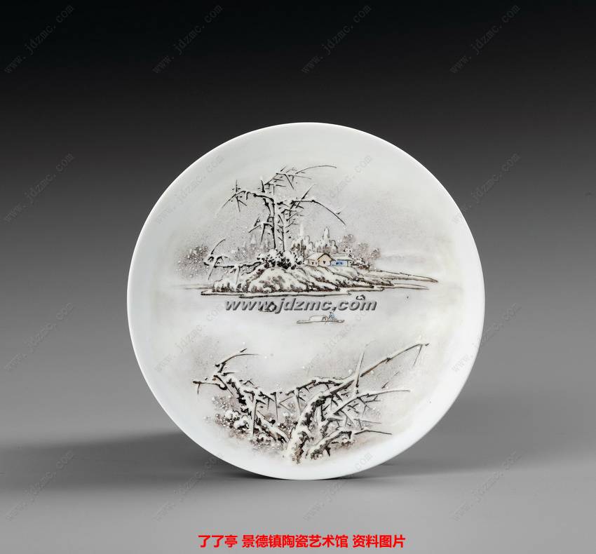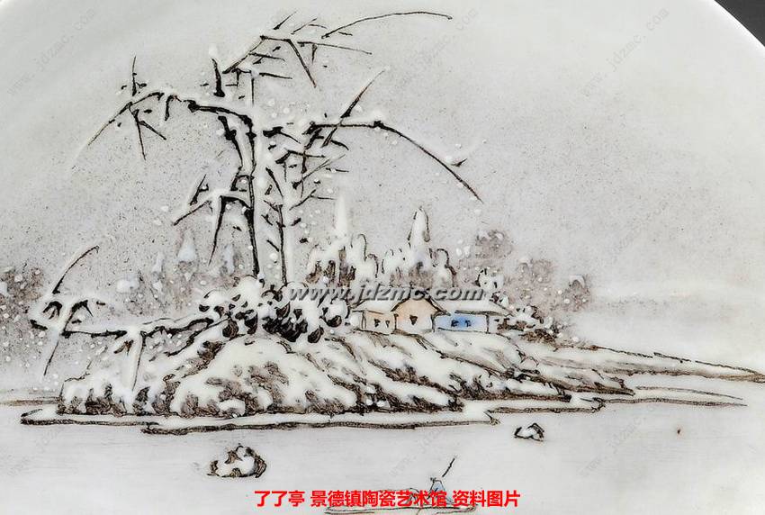 余惠光 粉彩《雪景》小瓷盘 第三副