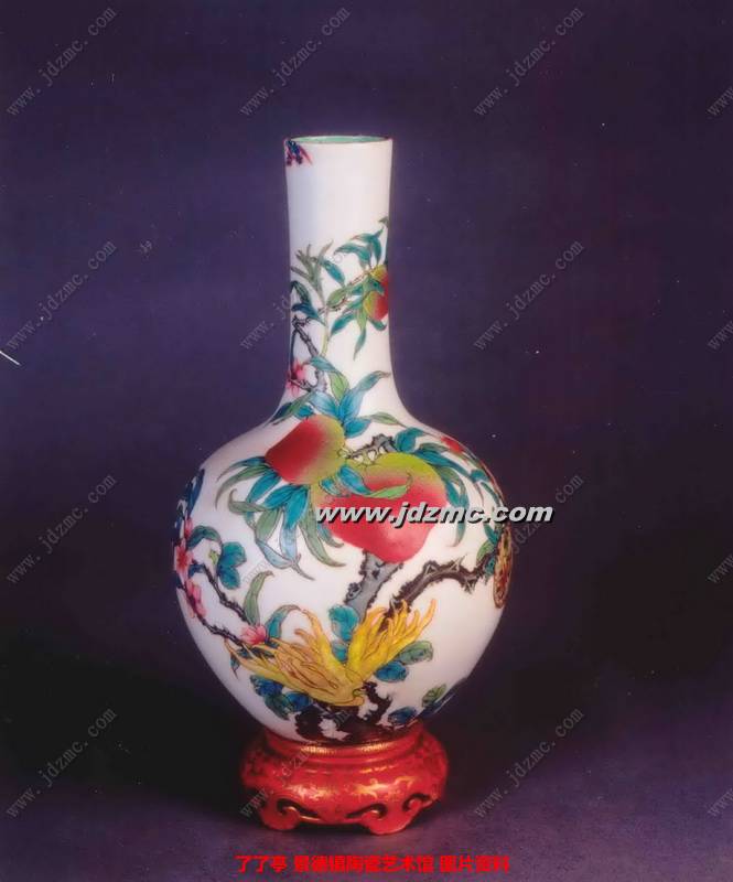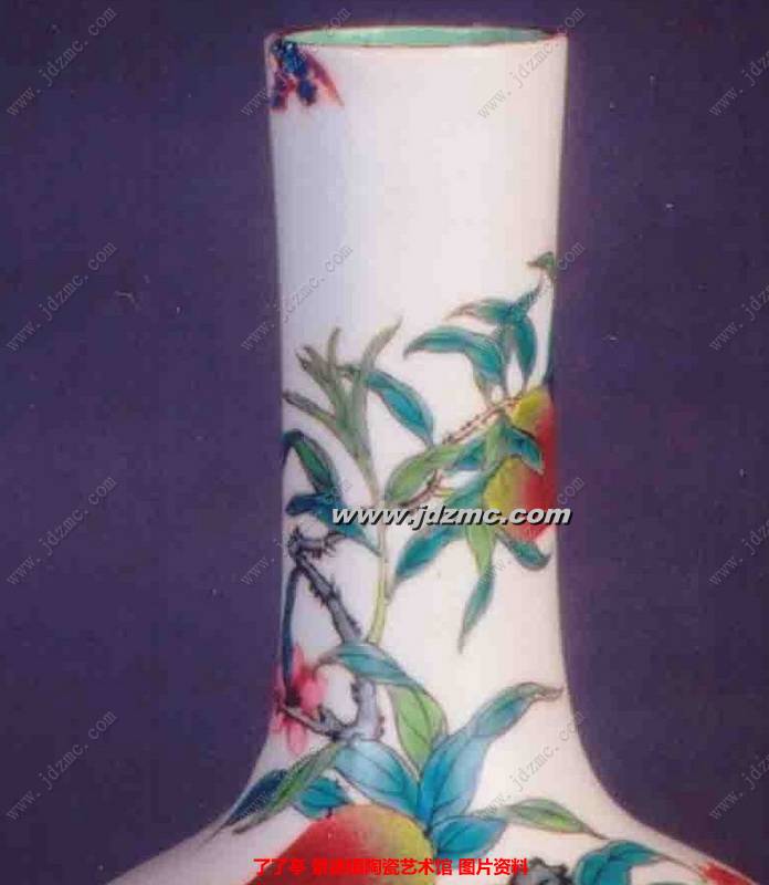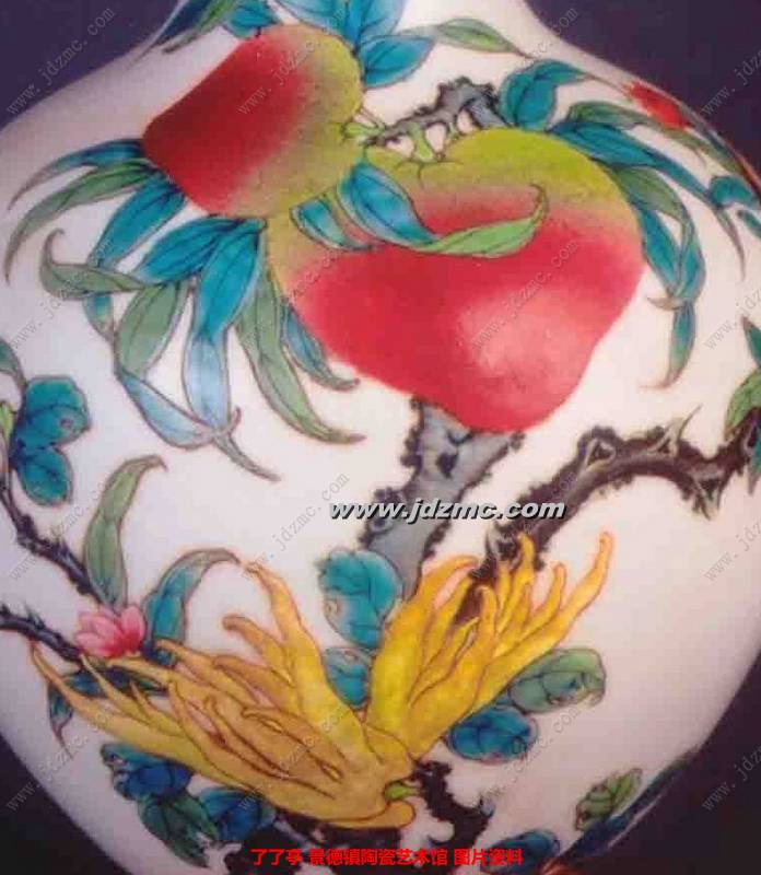 近代民国瓷真品精选:未知款 佛手寿桃天球瓶