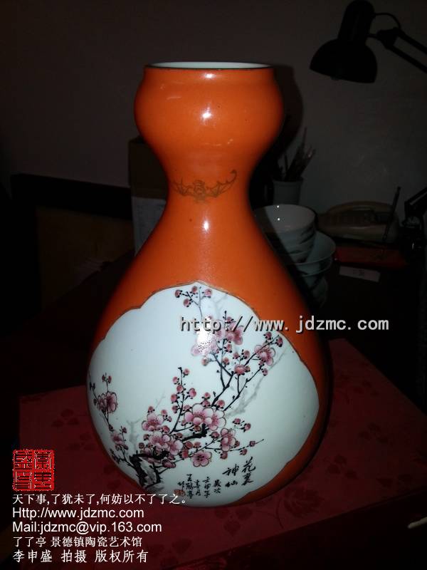 王鹤亭真品欣赏多图-蒜头瓶-江西瓷业公司 红款