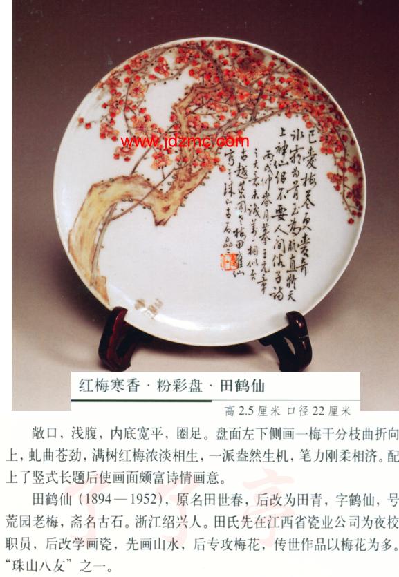 | 田鹤仙1941年粉彩梅花图瓷板 田鹤仙粉彩瓷板 鉴定图录 田鹤仙的小故事 田鹤仙小传 |